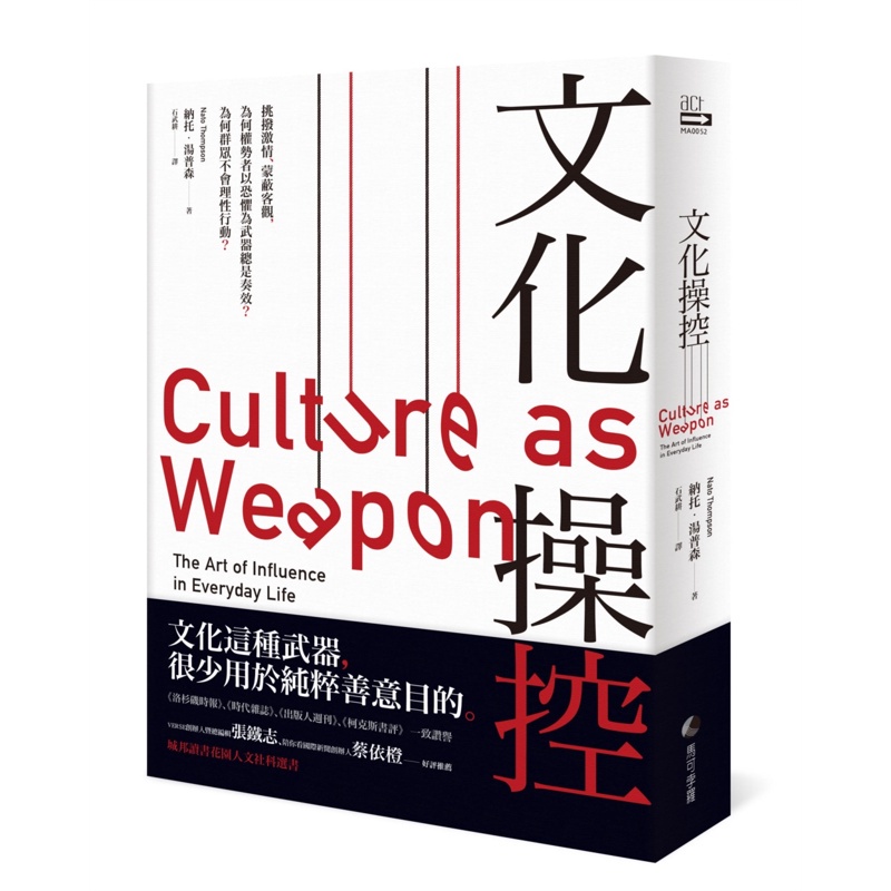 書中所指的文化,其表現方式是藝術。而文化操控,或許美國人第一個會想到川普。作為一種藝術形式的總統大選文宣廣告,藝術的表現在此是發揮得淋漓盡致。川普並不是第一個採用這種方式的人,在二十世紀美國的選戰,即開始採用此法。藝術表現可以帶來一種文化,也可以是與主流者區分的方法,更可以是商業公司廣告的手法。在女性地位尚未提升的時候,在公開遊行中的女性抽著菸草,藉著藝術的手段,將菸草與女性力求自主權益的正面形象劃上等號。